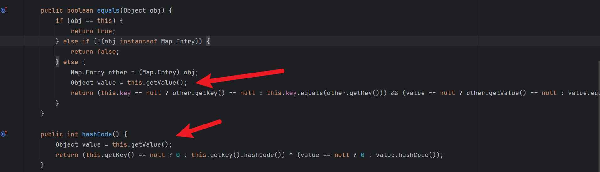 在 JDK8 中,HashMap 在反序列化时 几乎必然 会调用 key.hashCode() ,那么我们就应该从 hashCode 方法间接的调用到 getValue
