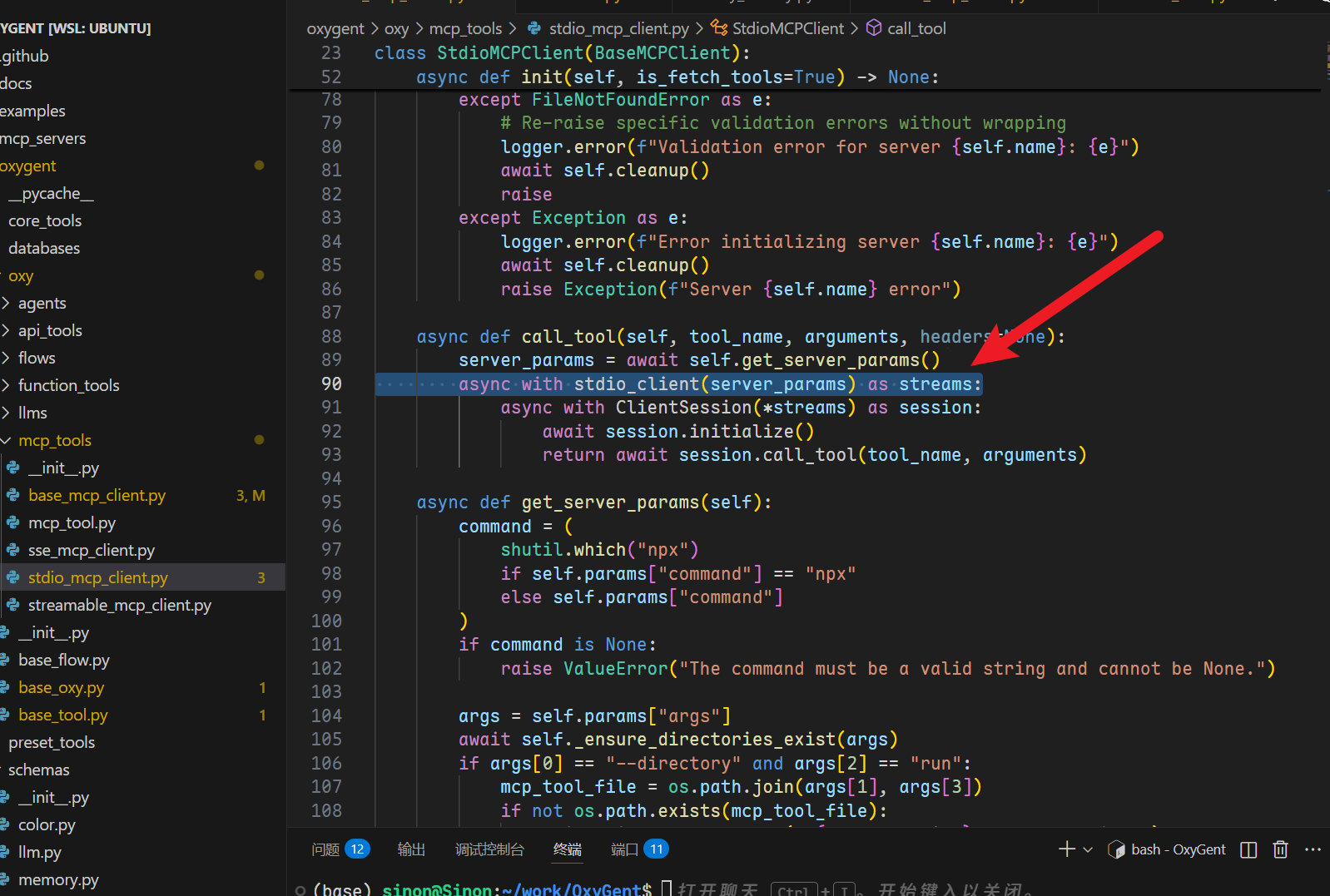接下来我们将进入 self.call_tool : oxygent/oxy/mcp_tools/stdio_mcp_client.py:88