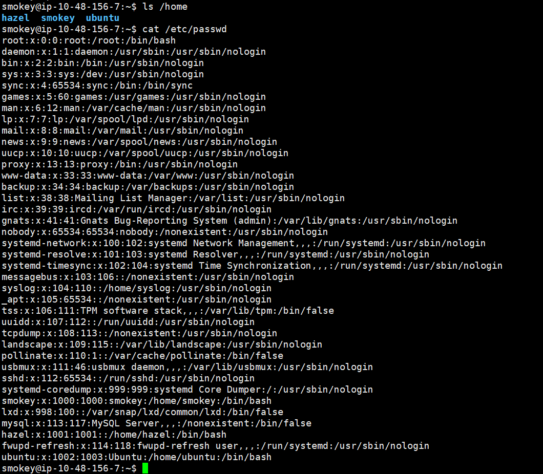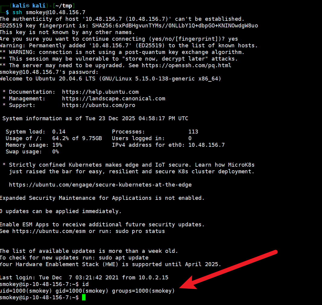 ssh smokey@10.48.156.7 # 靶机过期,换了一个ip