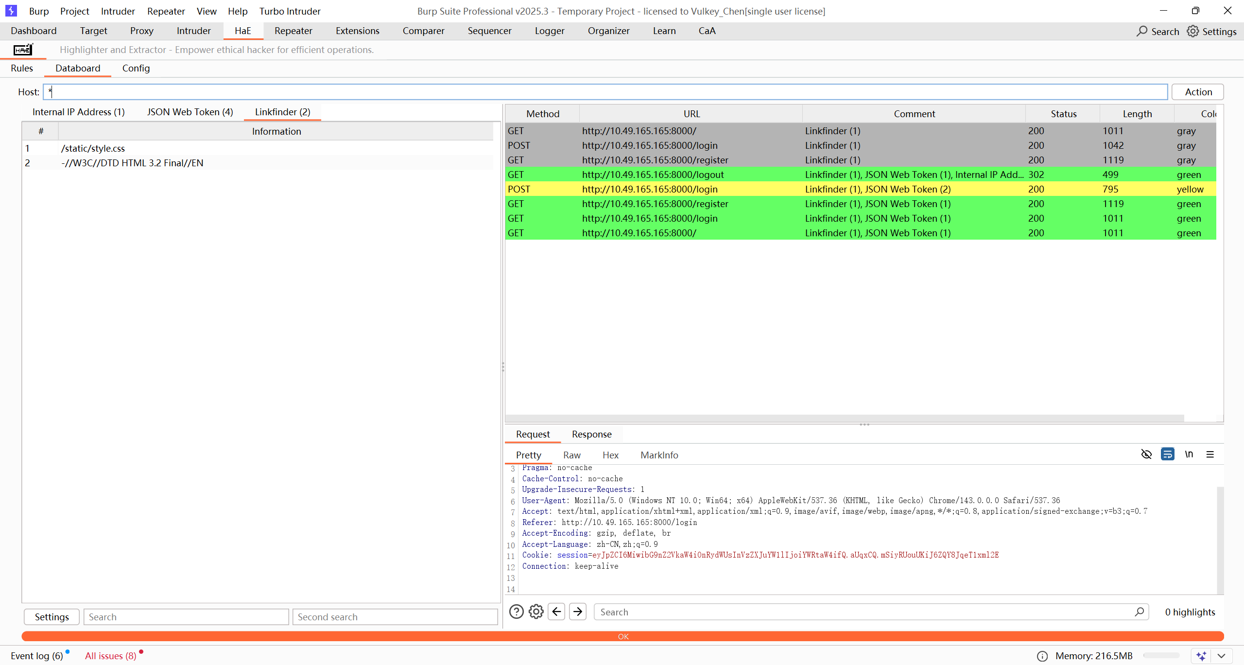 登录成功后,也没发现有什么东西,不过关注到 用户名会直接回显在页面上。以及指纹探测到是 python flask 起的服务。